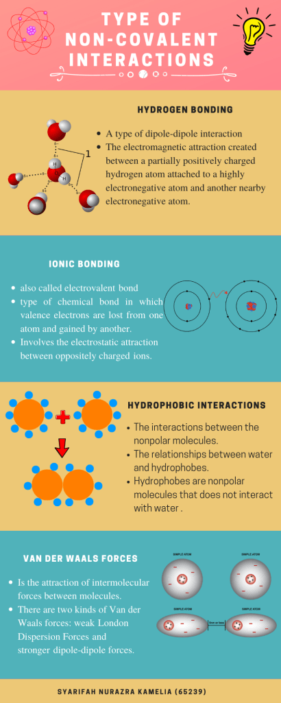 Hello Meowies! For this week task, the lecturer ask us to make an infographic based on what we understand about the type of non-covalent bonding. Please do read and understand it okay?